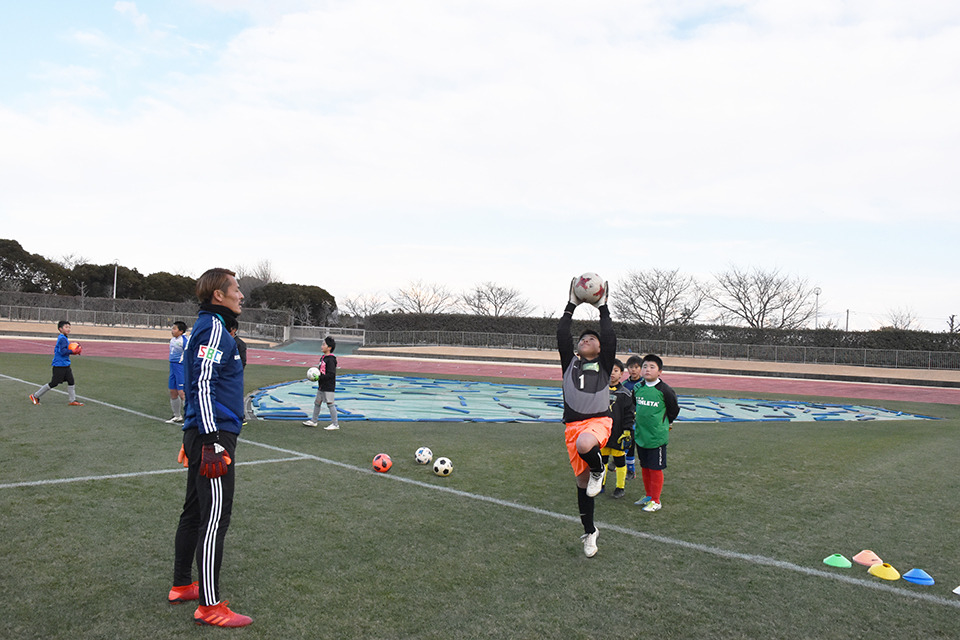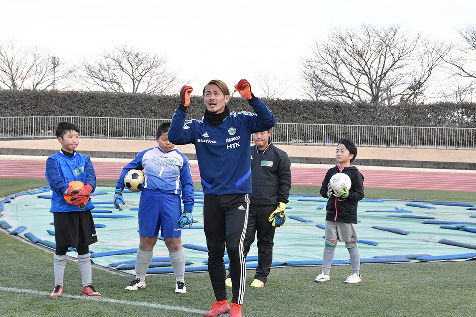 現役JリーガーのGK村山智彦選手がサッカークリニックで指導してくれました。