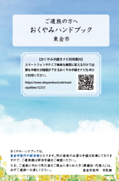 東金市では、ご遺族の皆さまが少しでもわかりやすく手続きを進められるよう、「おくやみ手続きナビ」、「おくやみハンドブック」を提供しています。
