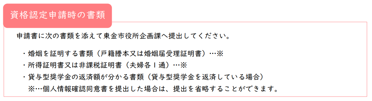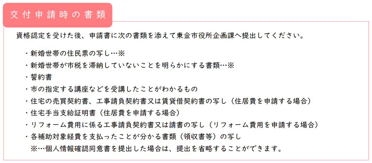 ※1 婚姻届を東金市に提出した、または婚姻後の本籍地が東金市のご夫婦は、個人情報確認同意書(第2号様式)を提出することで、省略できます。