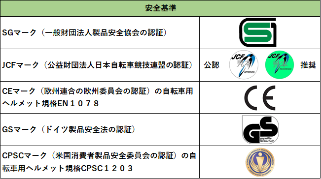 自転車に乗るときは、安全性を示すマークのついたヘルメットを着用しましょう。