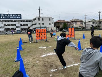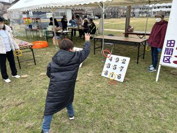 田間地区でリレーマラソンが開催され、175人が選手として参加していました。選手が走る姿に応援者の熱も入り、会場は熱気に包まれていました。また、ヨーヨー釣り、輪投げ、キックターゲット、フライングディスクなど、会場内では数々の催し物が行われ、楽しんでいる子どもたちの姿が印象的でした。