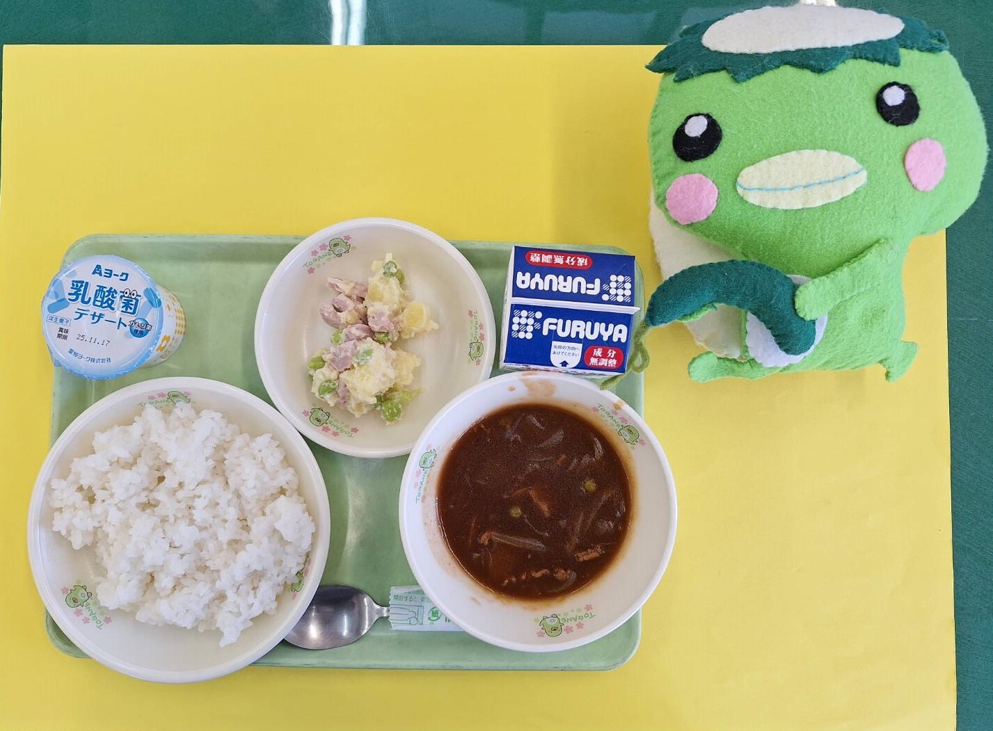 ハヤシライス・ポテトと枝豆のサラダ・乳酸菌デザート