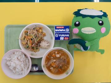 ごはん・塩昆布入りパオシュウ・春雨中華和え・かみなり豆腐