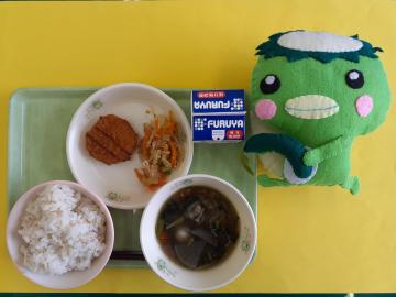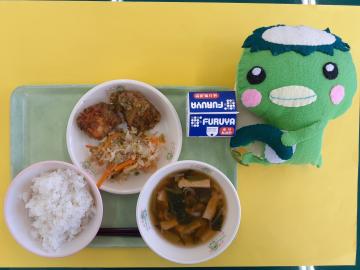 ごはん・鶏肉磯辺揚げ・たくわん和え・かぼちゃ味噌汁