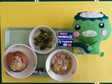 チキンときのこのグラパン・ブロッコリーおかか和え・野菜スープ