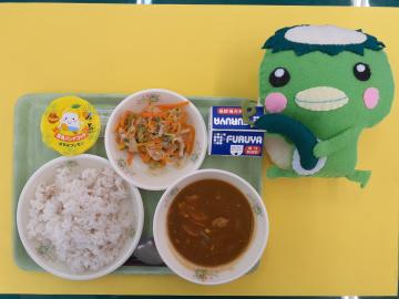 ミートボールカレーライス・キャロットサラダ・金メダルデザート