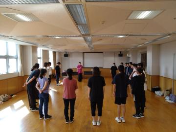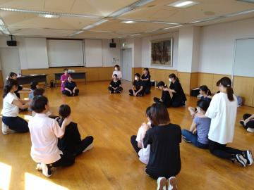 まずは自分の身体を感じる・知ることから始まり、オノマトペと動きを組み合わせながら身体を使った表現を体験しました。身体を使うことの楽しさやさまざまな表現方法を知り(インプット)、子ども達に(アウトプット)返してくれることで、いろいろな楽しさが広がっていくことと思います。
