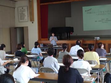 東金市内幼・保・こども園の職員を対象として、千葉明徳短期大学教授 伊藤恵里子先生をお招きし、「外国にルーツをもつ子ども・保護者への対応について」というテーマでお話を聞くことができました。