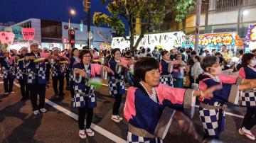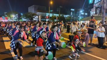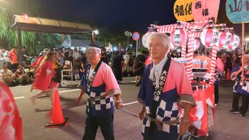 大和地区で去年発足された「大和やっさ連」が今年もヤッサ東金祭(8月10日)に参加しました。今回は、参加人数が30名から50名へ大幅増員となり、前回と同じく地区コミュニティセンターで活動する踊りのサークル、地区の区長、区長代理や社会福祉協議会長にもご参加いただきました。さらに地域の方々から提灯付きの山車を提供いただき、とても華やかな「連」として踊ることができました。