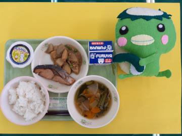 ごはん・いなだ照り焼き・さといもそぼろ煮・月見だんご汁・ゼリー