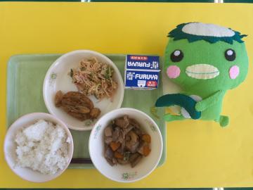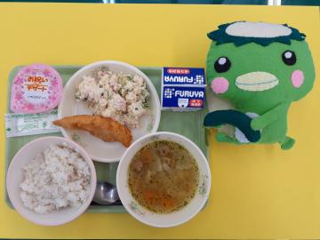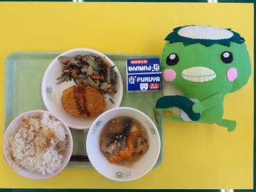 秋が旬の根菜やきのこがたくさん使われています。よくかんで食べましょう!!