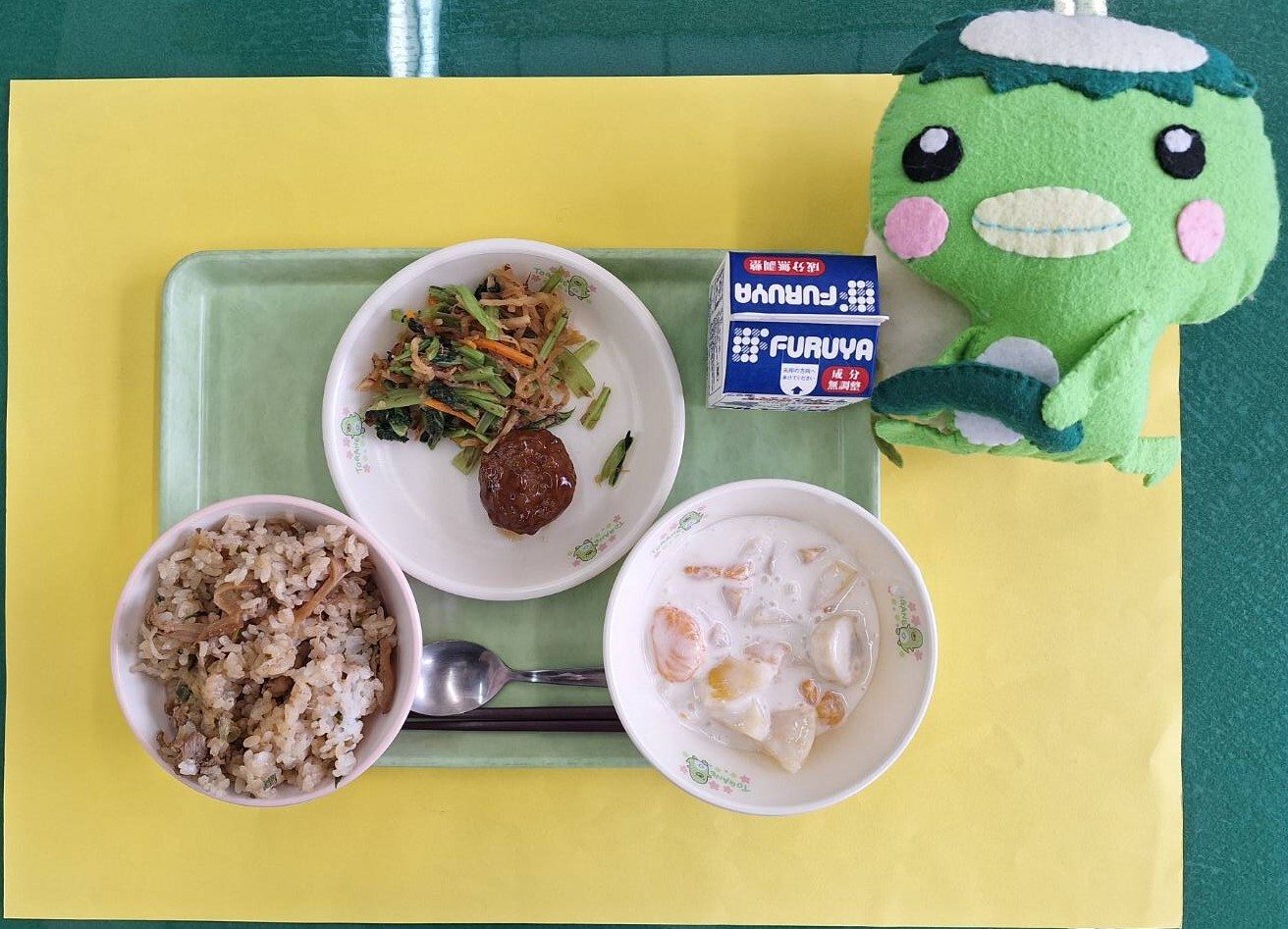 給食の「ちゃめし」はしょうゆ味の炊き込みごはんのことです。「さくらごはん」と呼ぶ地域もあります。
