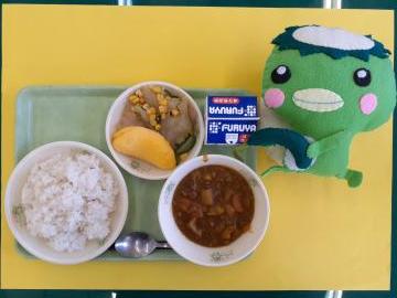 秋野菜カレーライス・チーズオムレツ・こんにゃくサラダ