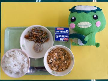 ごはん・野沢菜まんじゅう・もずくサラダ・麻婆豆腐