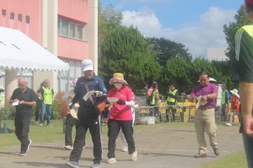 公平幼稚園の園庭をメイン会場に、グラウンド・ゴルフやボッチャの体験、買い物競争に玉入れが行われたほか、仮装した子どもたちが会場内を行進する季節感たっぷりのハロウィンパーティーもあり、大きな歓声や熱い応援が飛び交いました。