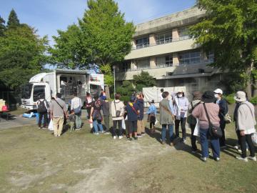 当日は豊成地区だけではなく、その他の地区からも多くの方の参加があり、計550人を超える参加となり、会場は大盛況となりました。今回の訓練を通じて防災意識の向上を図ることができました。