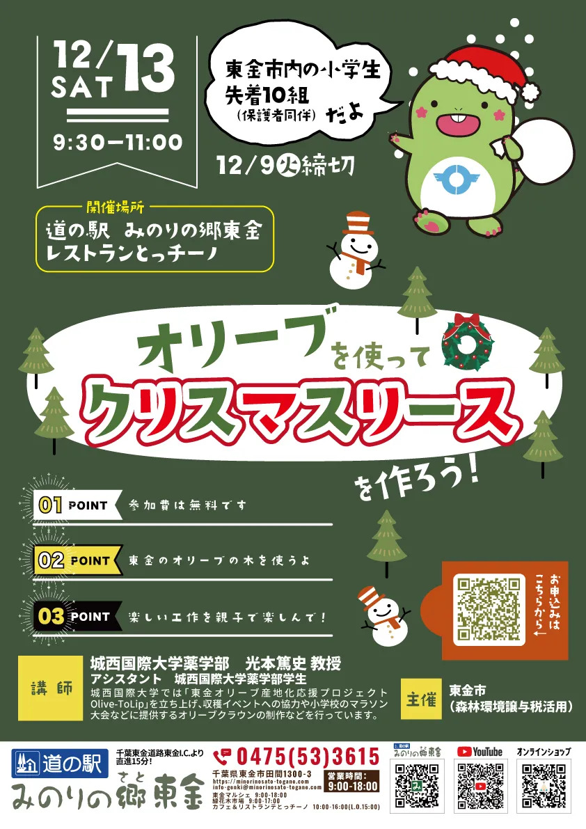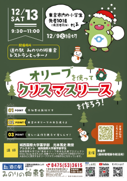 森林の大切さを学びながら、オリーブを使ったクリスマスリースを作ってみませんか。