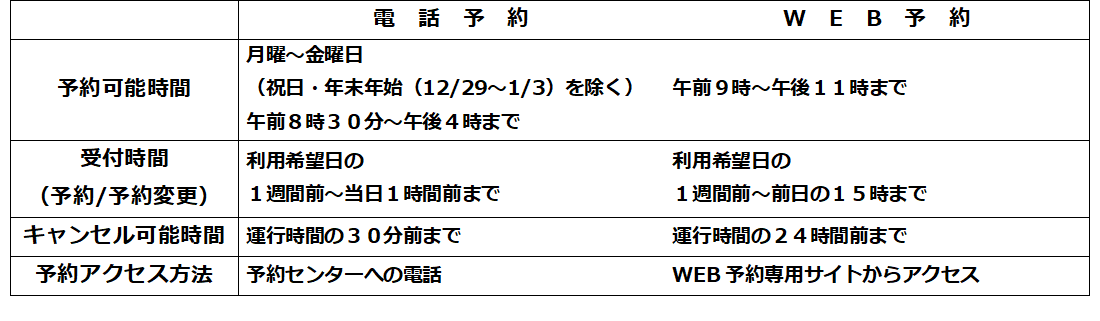 乗合タクシーについては、「予約が取れない」、「電話が繋がりにくい」などのお声をいただいています。