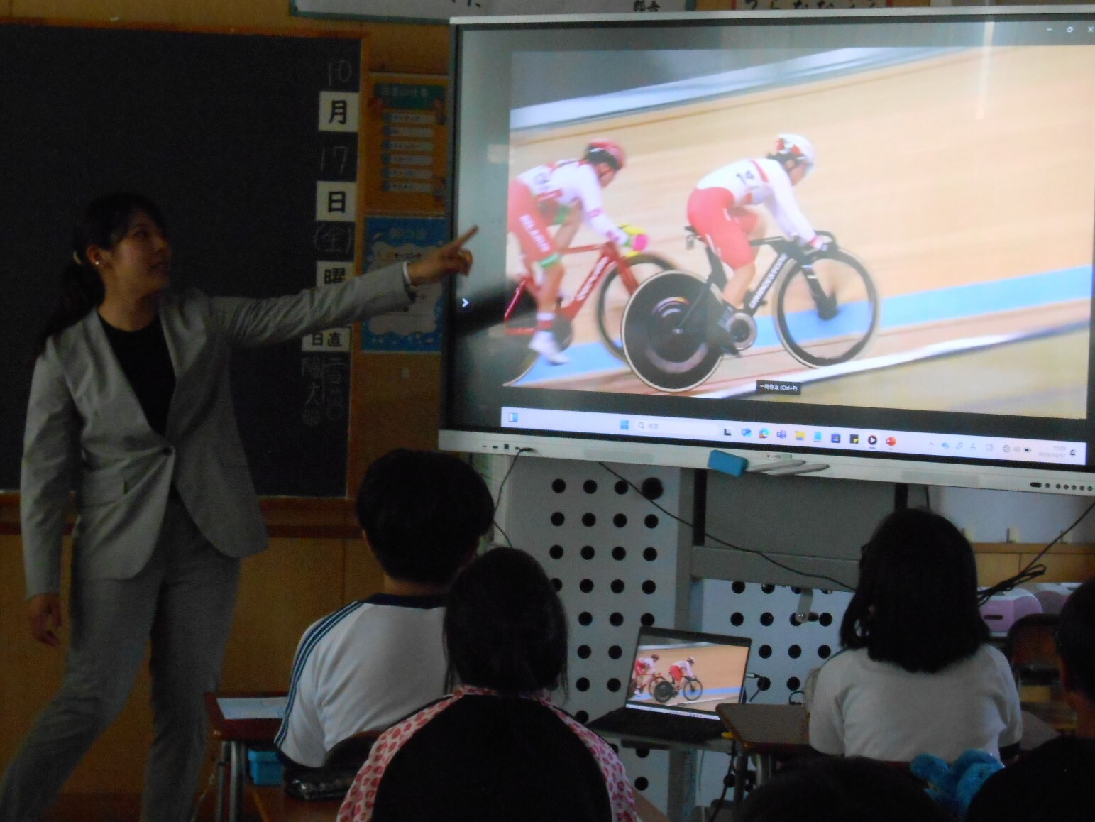 令和7年10月17日(金)、正気地区振興協議会では、正気小学校において、5年生を対象とした「夢の教室」を開催しました。当日は、東京オリンピック自転車競技(女子マディソン)日本代表の中村妃智さんを講師に迎えての実施となりました。