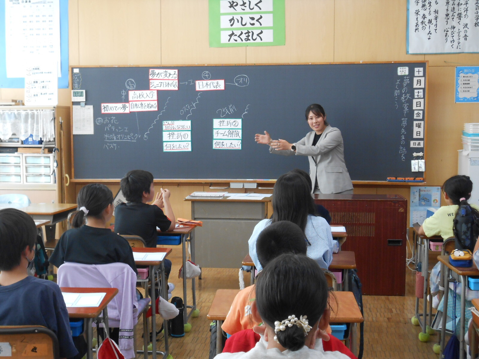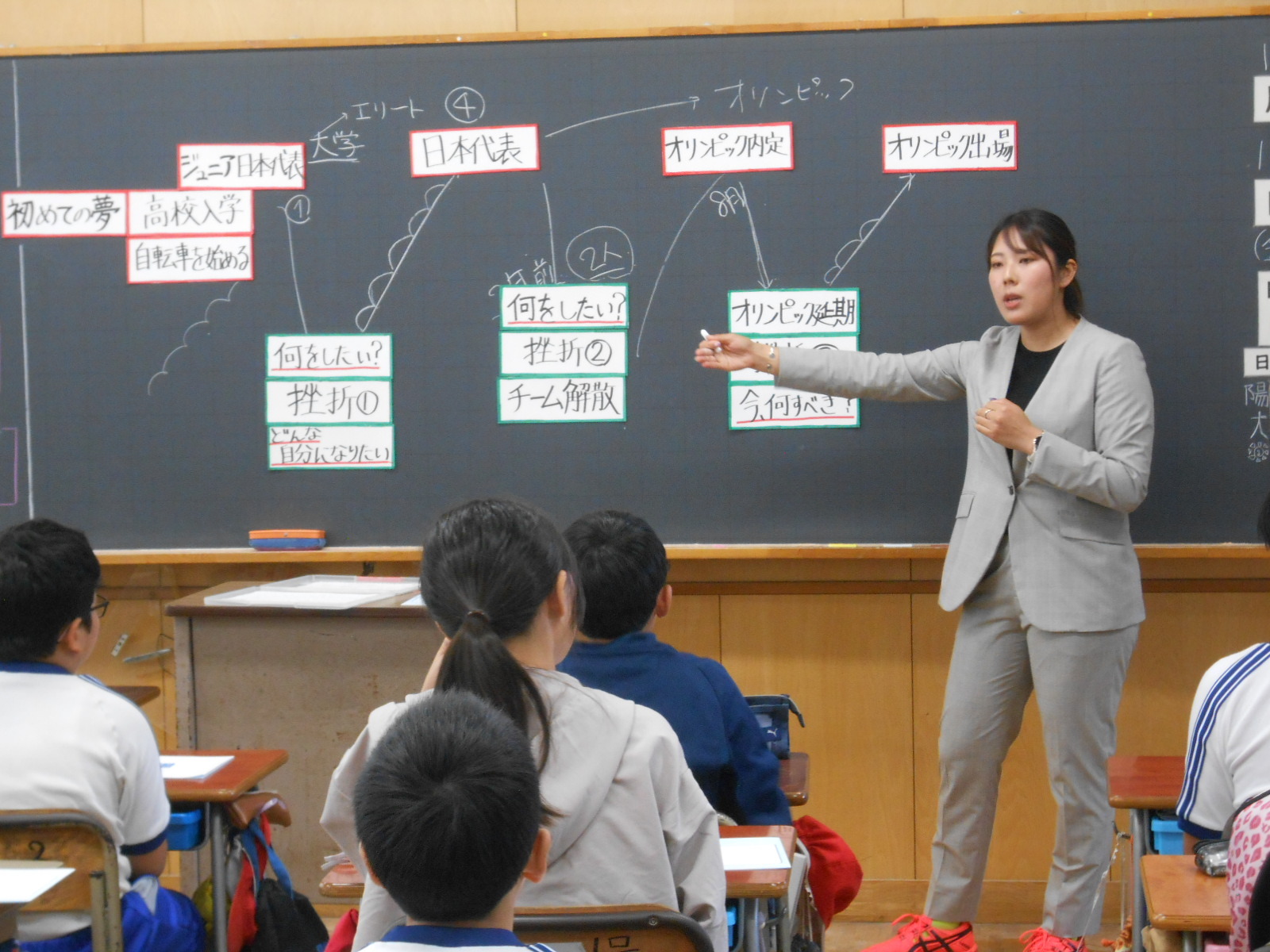 中村妃智さんからは、若い頃から夢や目標を持つことの大切さ、苦しい時でも夢をつかみ取るための歩みを止めないことの重要さなどを、子どもたちに伝えていただきました。