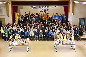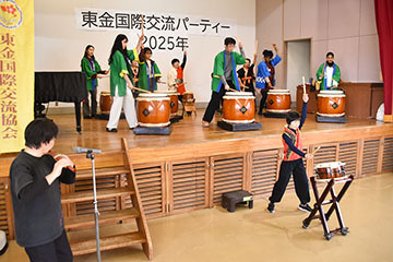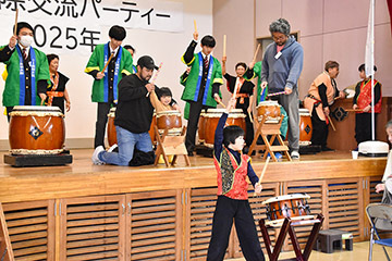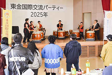 東金国際交流協会と東金ロータリークラブによる「東金国際交流パーティー」では、城西国際大学の留学生などを含む17カ国の方と地元の方、合わせて187名が集まり、和やかに交流しました。参加した皆さんは、和太鼓の演奏に体験、伝統的な遊びや、茶道、華道、折り紙の体験などで日本の文化に親しみました。