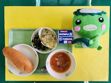 さつまいもパン・手づくりグラタン・ひじきとブロッコリーのサラダ・ミネストローネ